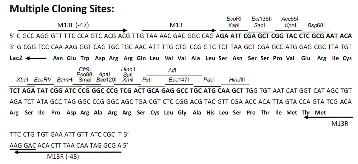 3'sequencing primers: M13F:TGTAAAACGACGGCCAGT